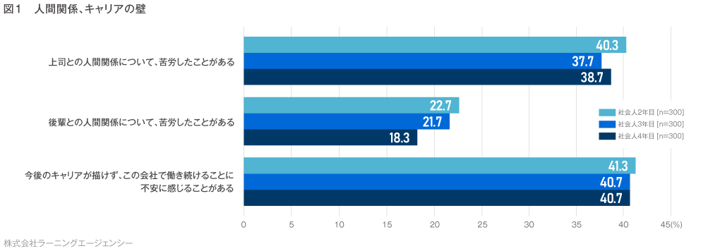 *1ラーニングエージェンシー「若手社員の意識調査(社会人2年目~4年目の直面する壁TOP3編)」
