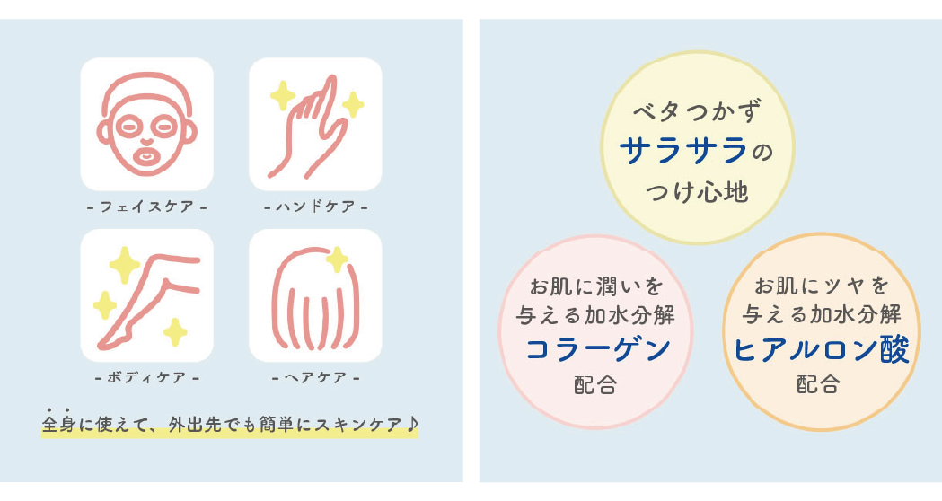 ヒアルロン酸とコラーゲンが配合された、全身に使える保湿ジェルなので