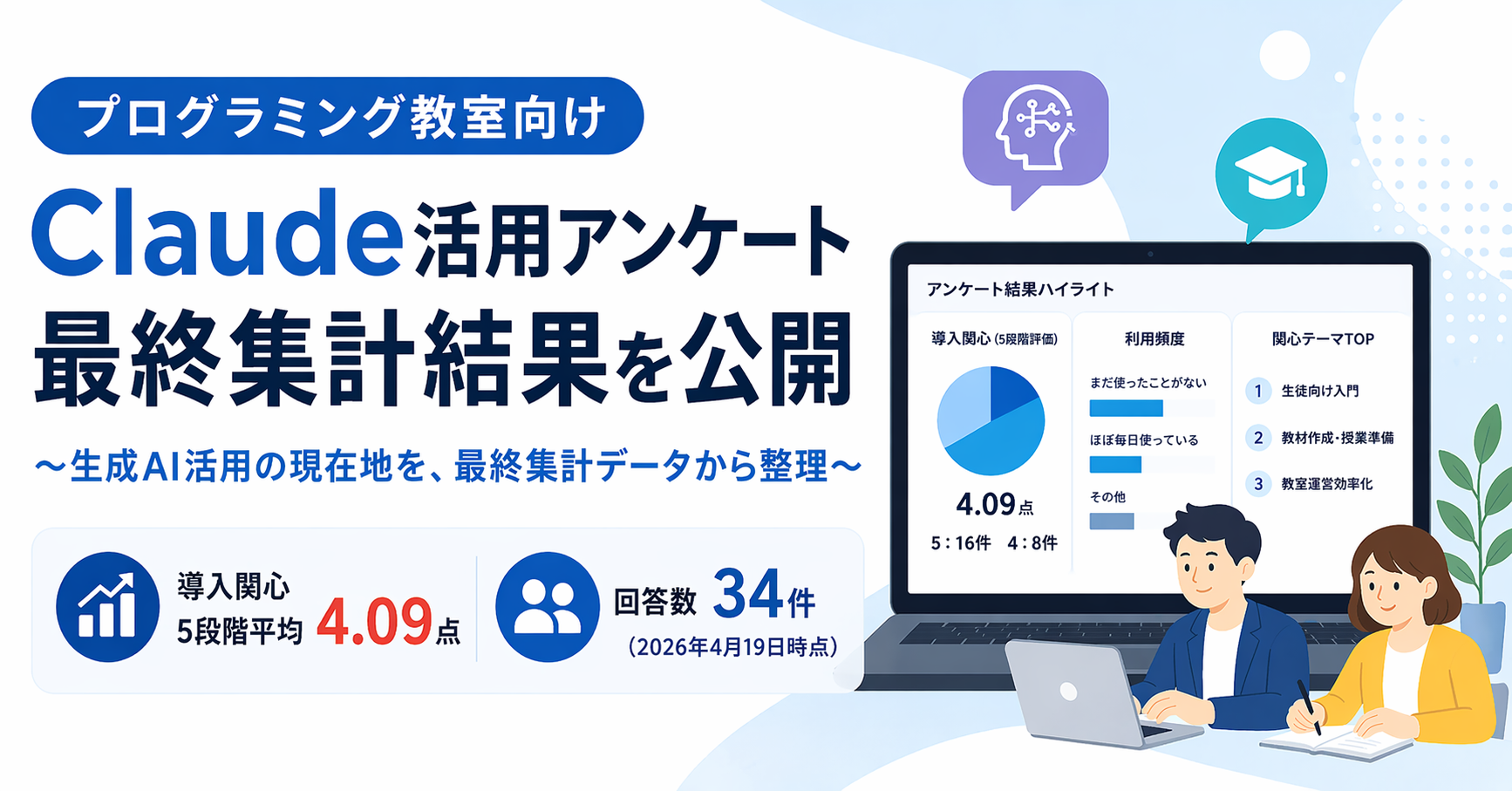10代向けデジタル人材育成サービス『TechHigher』を運営する株式会社エクシード(本社:東京都渋谷区、代表取締役:澤部愛子)は、全国のプログラミング教室関係者を対象に実施した「プログラミング教室向けClaude活用アンケート」の集計結果を公開しました。