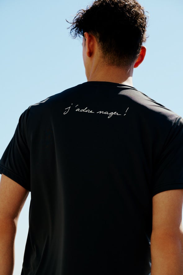 今回の新作コレクションでは、デザイナーのアニエス・トゥルブレが自ら撮影したパリの夜景や青空のフォトをプリントした水着が登場。日常的にスイミングを楽しむアニエスの手書きによる”j’adore nager!”=”泳ぐことが好き!”のメッセージをあしらったTシャツもラインアップします。耐久性に優れたトレーニング水着から動きやすくファンスイムにおすすめなフィットネス水着をはじめ、普段使いにも便利なTシャツやジャケット、 ビーチバッグやサンダルなど小物まで幅広いアイテムを展開します。