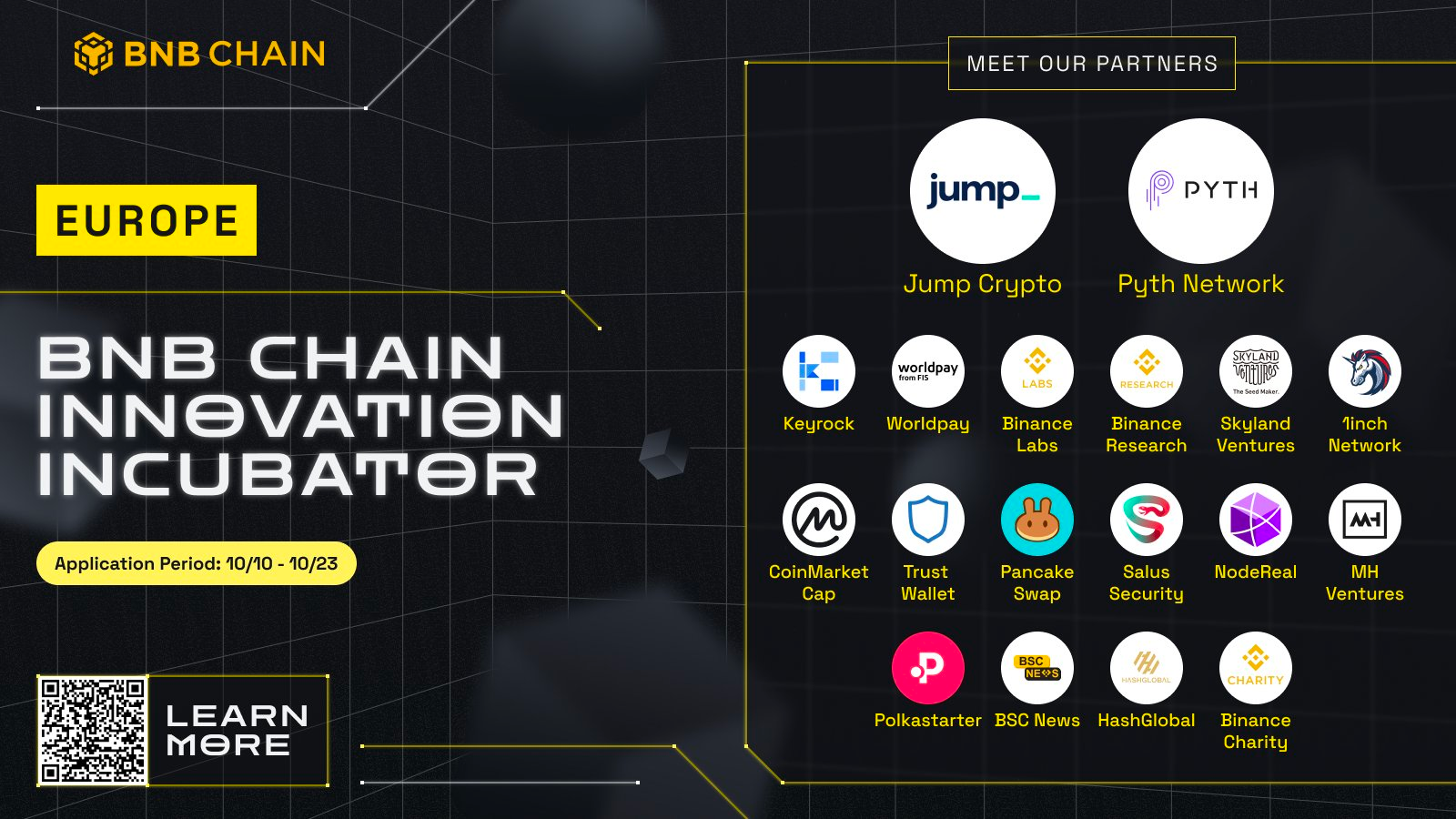 I am thrilled to announce the partnership with the BNB chain. Europe is a market that we have been watching closely for some time, and as such, we are very pleased to join the BNB chain with its focus on Europe, as one of the partners of its European Innovation Incubator. I'm looking forward to meeting up with great project teams in Lisbon, Paris, London, Berlin, Barcelona, and Warsaw!