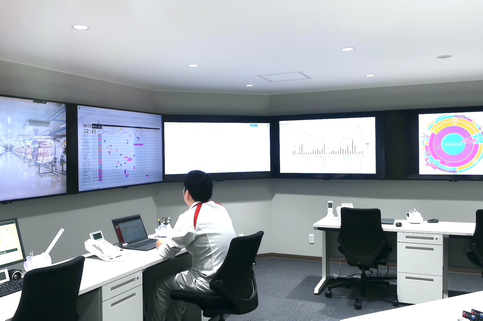 栽培エリアの各所に設置したセンサーやカメラで栽培状況をリアルタイムでモニタリングし、栽培プログラムや施設内の環境を集中管理します。コントロールルーム1カ所で栽培に関するあらゆる情報を把握でき、データに基づいた栽培により高品質な野菜が作られます。