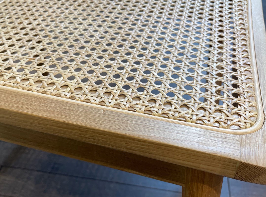 篭目編のラタンのすっきりとした印象やアジアンリゾートのような雰囲気と、程よいオーク天然木の美しい木目と高級感・ぬくもりが全体をより柔らかいイメージに導いています。編み込まれたラタンは、その隙間が作る通気性により、腰かけた時の「ムレ感」がなく、素材自体の保温性により、たとえ通気性があっても冷たさがなくなるのです。昨今流行っている、さっぱりとした韓国風のインテリアや、無機質なお部屋の中で、「雰囲気を壊さずぬくもりや高級感をプラスしたい」とお考えの方におすすめです。