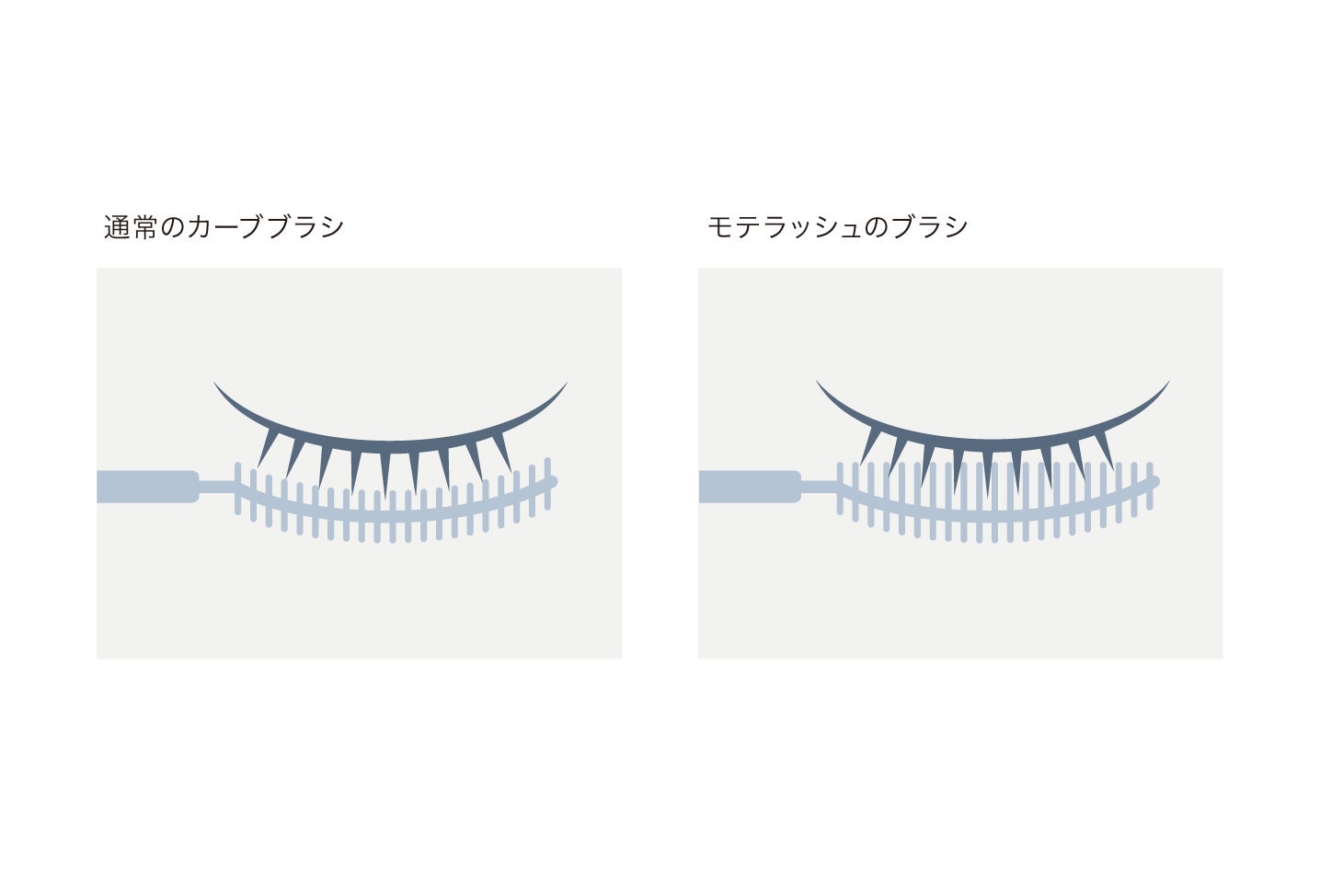 美容液をまつげの根もとから塗布膜を均一に、簡単に塗布できるブラシを開発。カーブの内側で直線状になるブラシファイバーが、自然にまつげの根もとに届き、均一な塗布膜と美しいセパレートを叶えます。毛の一本一本については、まつげの根もとにはしっかりと、そして毛先に向かっては軽くつく塗布膜を、ストレスフリーに実現。