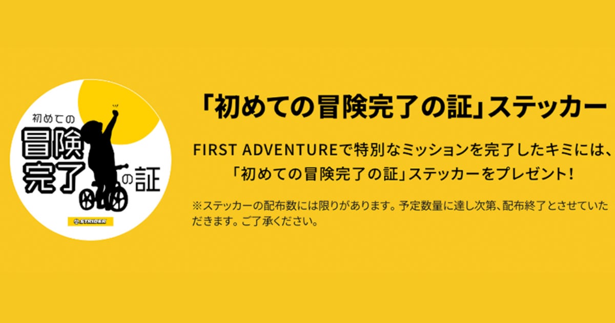 ファーストアドベンチャーで特別なミッションを完了したお子さま全員に「初めての冒険完了の証」ステッカーをプレゼント。この春、子どもたちにとっての冒険の第一歩を応援いたします。