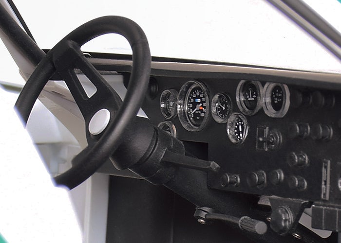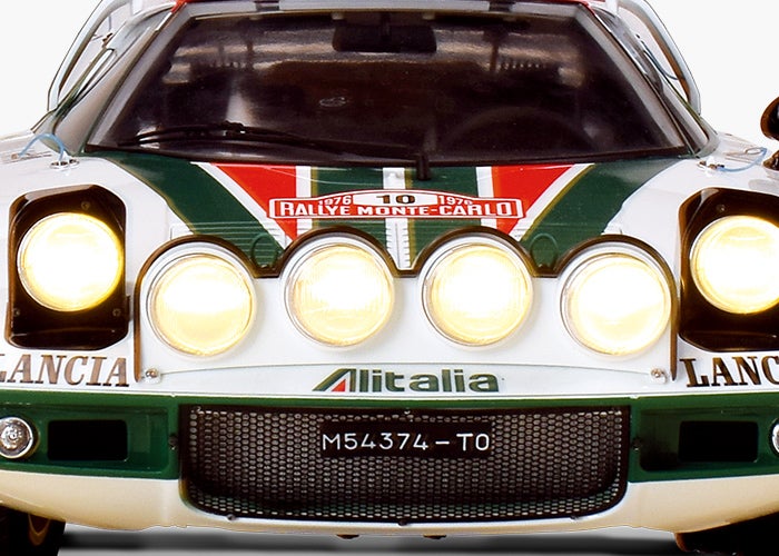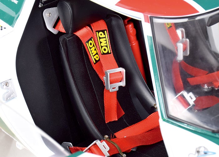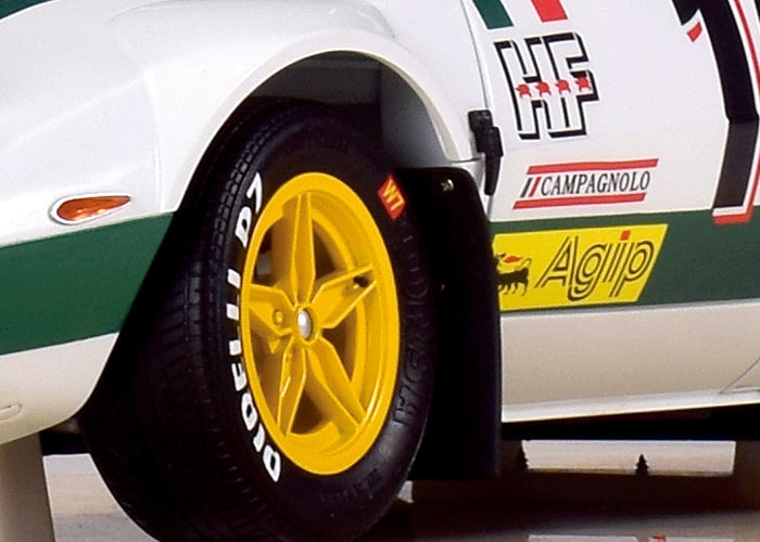 アリタリアカラーに10番のゼッケンが付いた1973年の開幕戦、ラリー・モンテカルロのディテールが精密に再現されている。前後ハッチの開閉機構や、着脱可能のライトポッドカバー、ホイールやタイヤ、リアルなコクピット、もちろんミッドシップに搭載されたディーノV6エンジンまで、稀代の傑作ラリーカーの真髄を堪能することができる。【機能美が宿る“女王”のディテール】