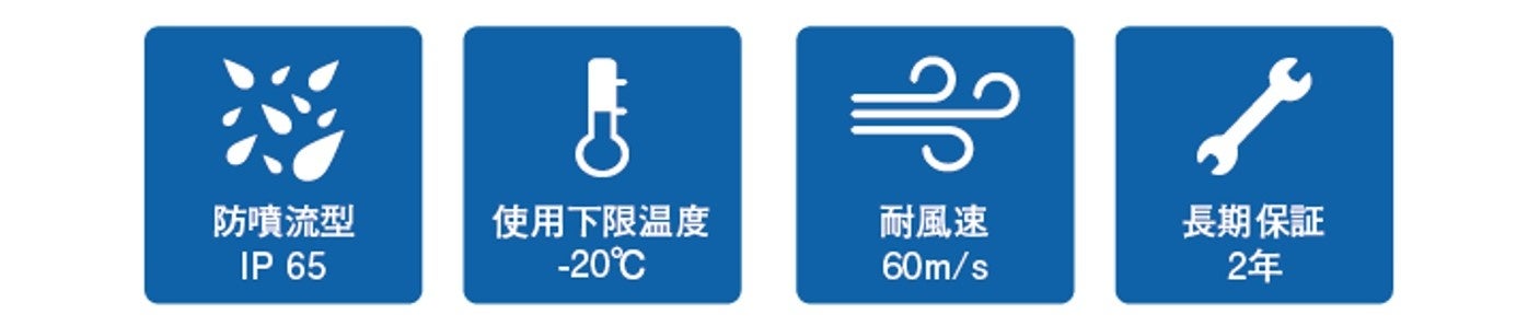 集中豪雨や強風、低温に対応。-20℃の低温環境でも照明だけでなくソーラー充電も機能します。