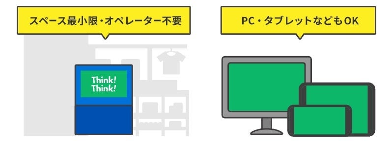 場所をとらず最小限のスペースで設置が可能な他、什器を設置せずに直接PCやタブレットなどに導入することも可能です。また、導入後のオペレーションは、デバイスのメンテナンスを除き一切不要です。