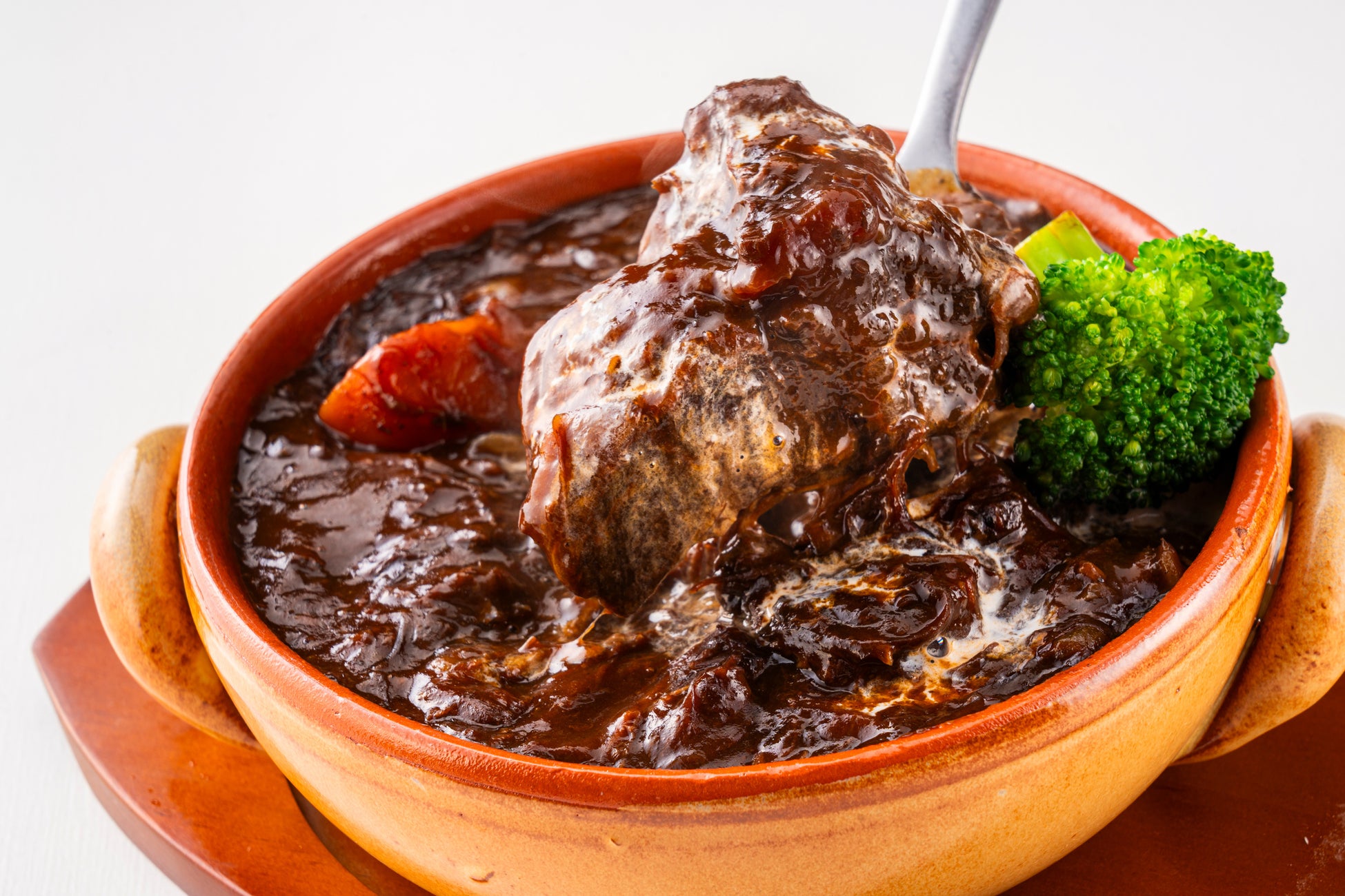 黒毛和牛の豊かな旨みをじっくりと引き出し、赤ワインと香味野菜で丁寧に煮込んだビーフシチュー。とろけるほど柔らかく仕上げた上質な肉と、深みのあるコク豊かなソースが口いっぱいに広がる贅沢な一皿です。