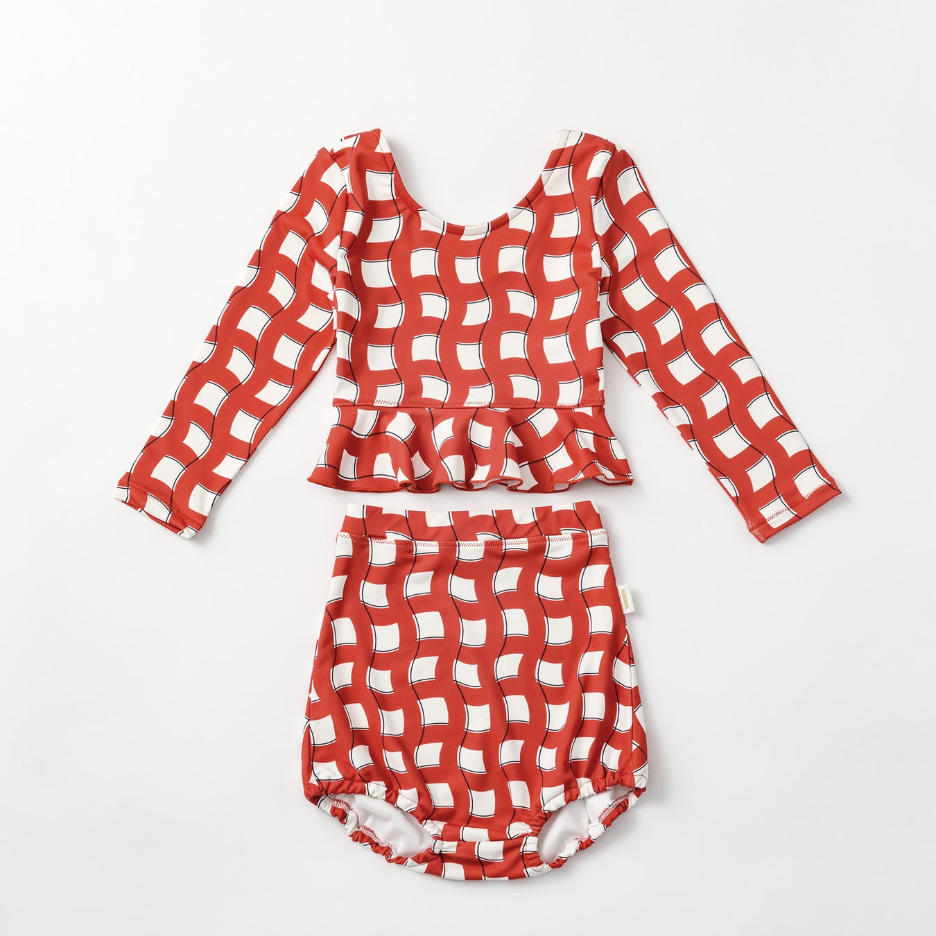 夏の定番、ラッシュガードいらずの長袖スイムウエアに限定色が登場!ゆらめく水面のようなチェック柄で、夏をノスタルジックに彩ります。