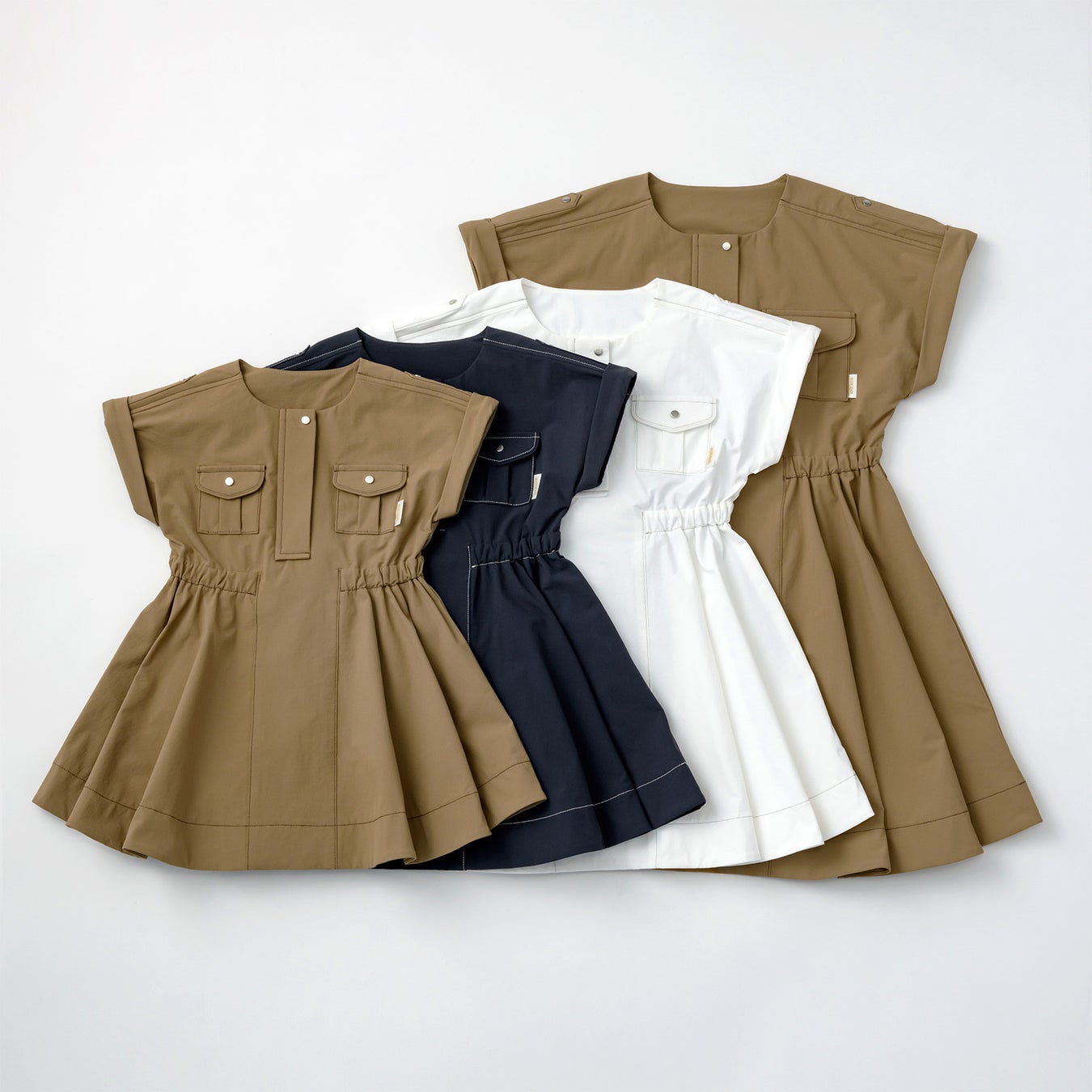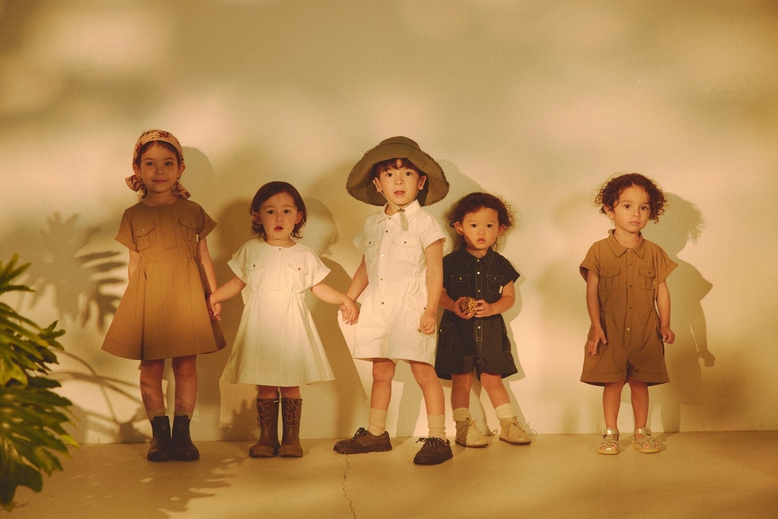 ダブルポケットやエポレットなど、大人顔負けのディテールを注ぎ、子どもの“今だからこその可愛さ”にフォーカスしました。ワンピースタイプとジャンプスーツタイプの2デザイン。