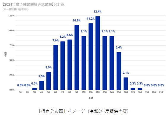 5月17日(火)には得点分布図も公開いたします。解答速報利用者全体の得点分布が可視化されるので、ご自身の相対的な立ち位置が確認でき、試験後からの学習の指針としてご活用いただけます。
