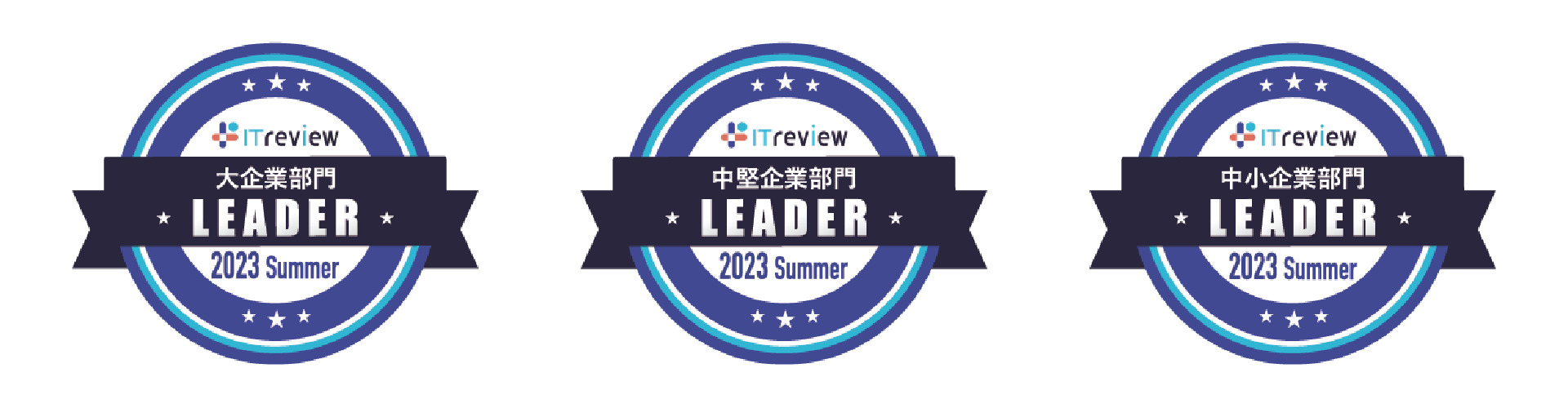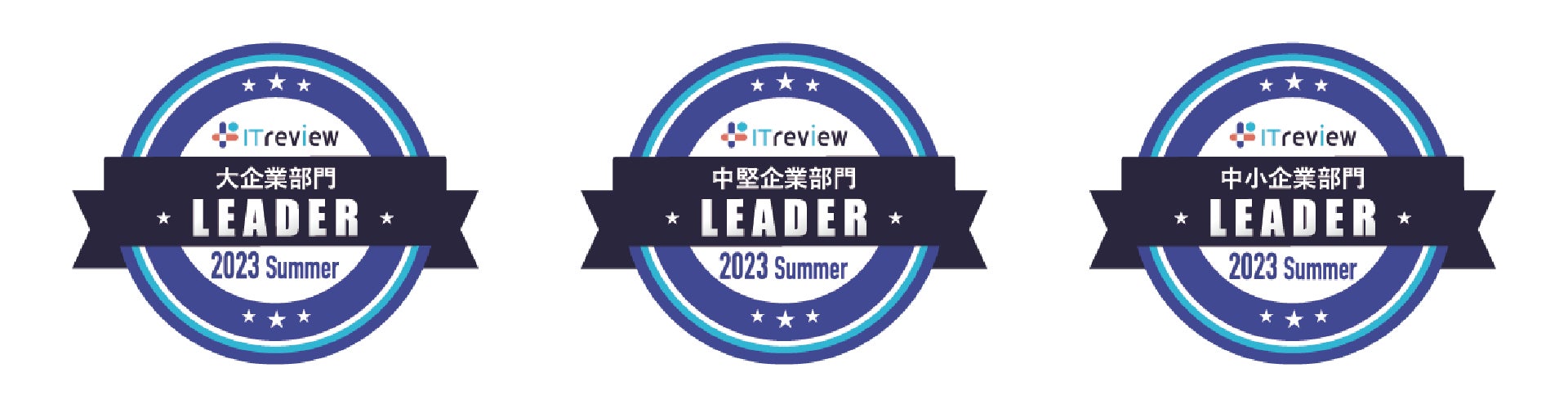「ITreview Grid Award 2023 Summer」では、ITreviewに集まった約11万件のレビューをもとに、顧客満足度と認知度の双方が優れた製品を「Leader」として表彰、バッジが発行されています。ITreviewのLeaderは、既に多くの利用者から支持を得ている証であり、名誉ある称号とされております。