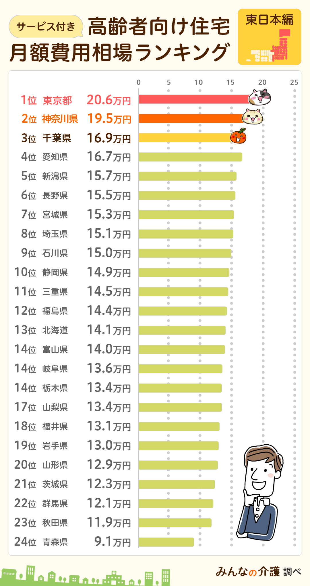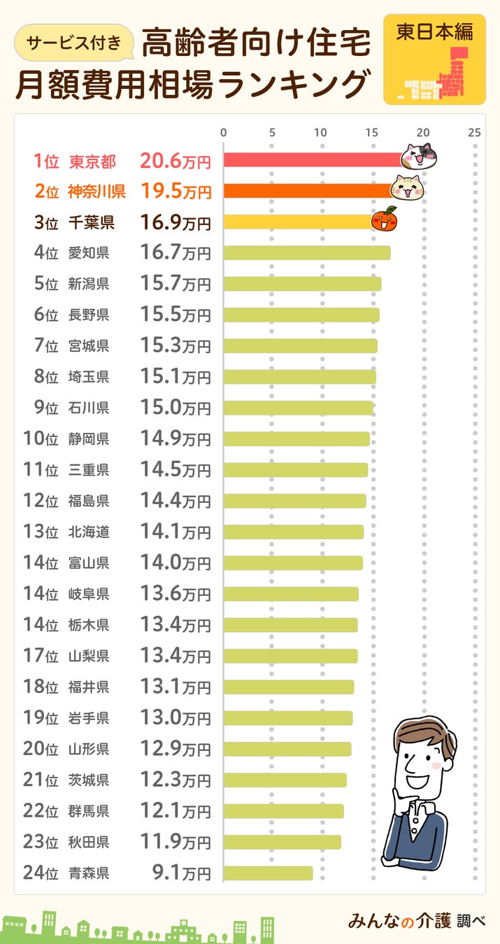 参考:東日本のサービス付き高齢者向け住宅の月額費用相場ランキング
