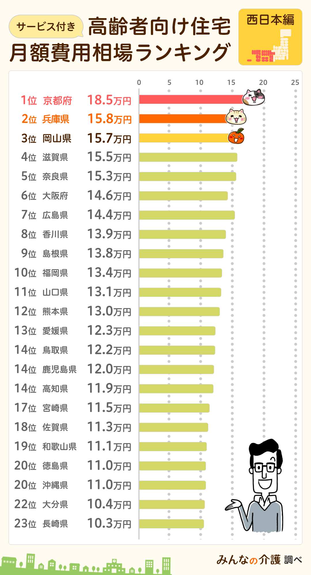 西日本のサービス付き高齢者向け住宅の月額費用相場ランキング