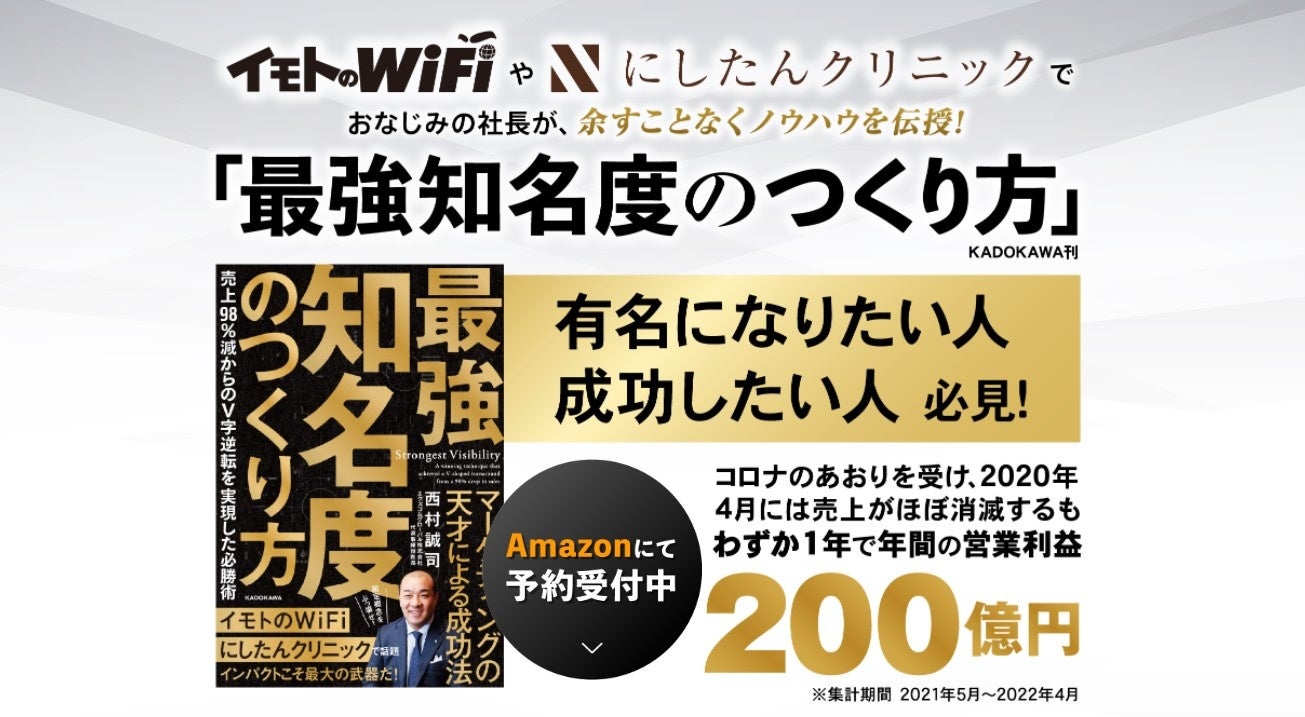「イモトのWiFi」や「にしたんクリニック」を手掛ける社長の初著書『最強知名度のつくり方』出版決定