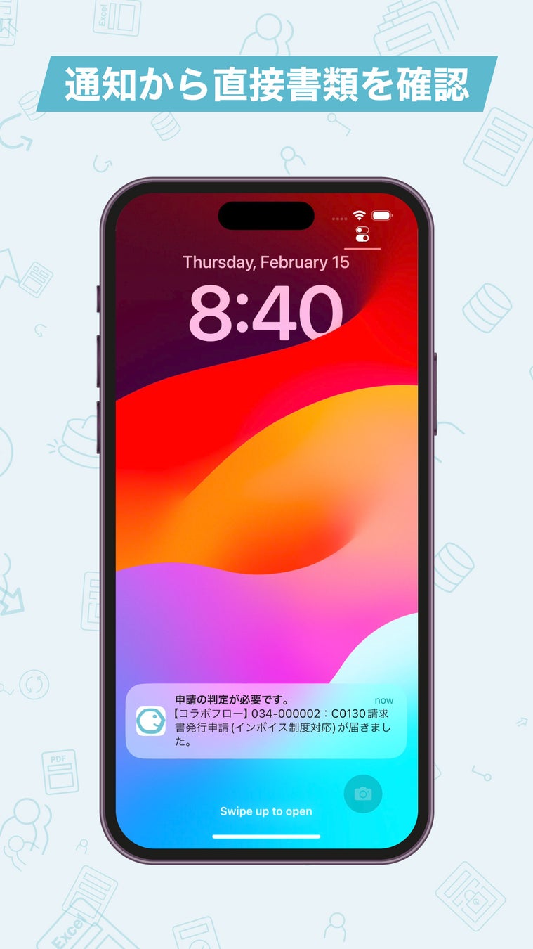 ワークフローシステム「コラボフロー」のモバイルアプリを利用することで、申請書の判定依頼のプッシュ通知を受け取ることができます。