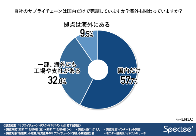 過半数の企業が『国内だけ』と回答した一方で、何らかの形で海外に自社のサプライチェーンを展開している企業が4割を超えるという結果となりました。