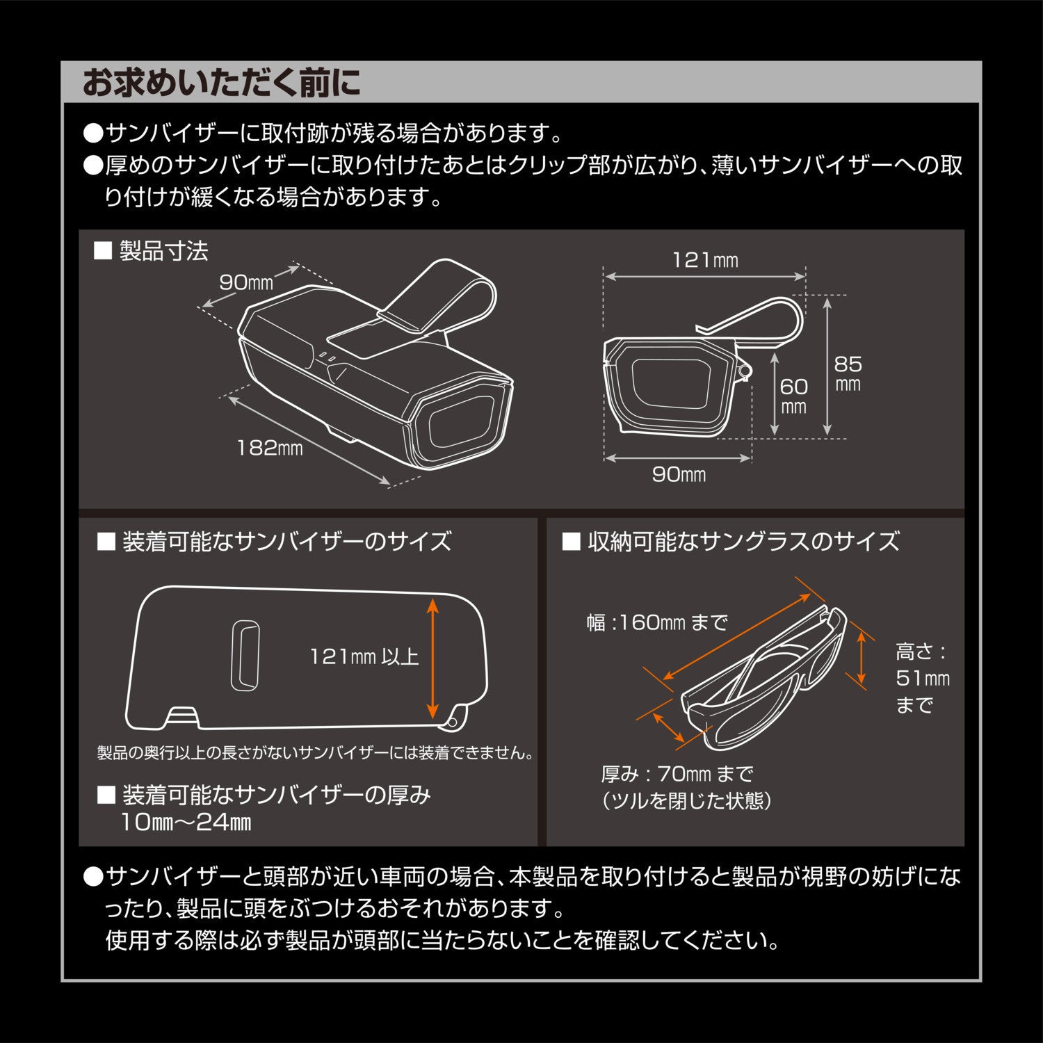 ●サンバイザーに簡単取り付け