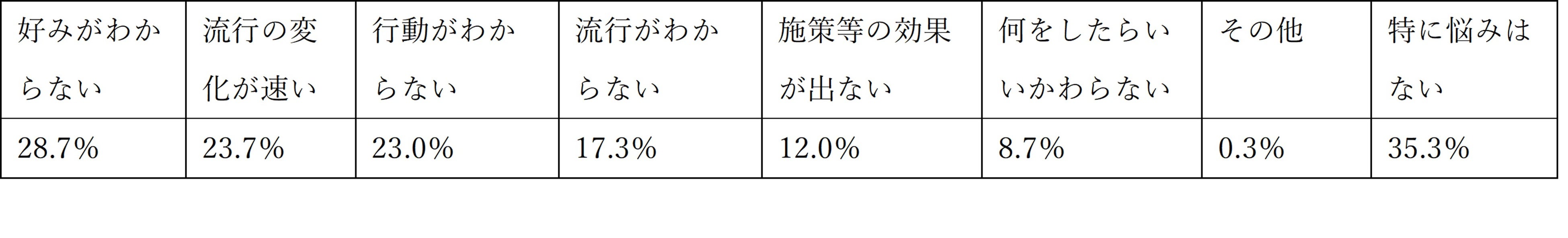 【世代別にどの程度注目しているか】という質問では“注目している”と回答した方が最も多いのはZ世代が34.7%でトップ。さらに【Z世代のユーザーが多いと思うSNSメディア、Z世代と相性が良いと思うSNSメディア】はともに“TikTok”が1位という結果が出ました。また【Z世代をターゲットにする際の悩み】については“好みがわからない”が28.7%、“行動がわからない”が23.0%と上位回答でした。