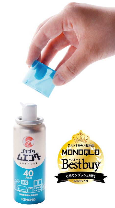 空間にプッシュし、1本で最大60畳分の部屋の駆除ができるという製品。使い切りでなく、部屋の広さに合わせて噴霧量を調節できるのが経済的。無煙なのにGと無縁に! 複数の部屋で同時に使えば害虫を一網打尽にできそうです。