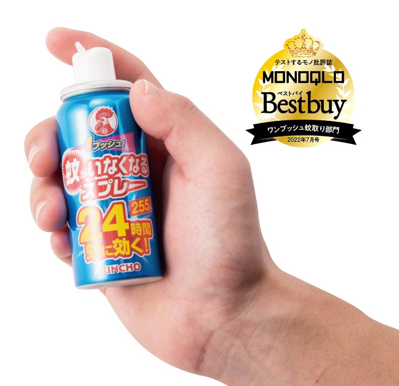 効果が24時間と長続きするだけでなく、1本あたりの使用回数も、今回テストした6製品中最多の255回と多い本製品。価格は1000円を超えますが、コスパのよさでは他を圧倒しています。また、テントの中に蚊を入れてひと吹きしたテストでも安定した実力を発揮。即効性の高さを示してくれました。