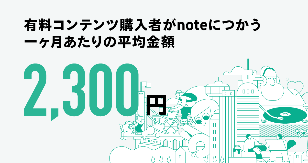 ※平均購入金額2,300円:有料コンテンツ購入者がnoteで使う一ヶ月あたりの平均金額。2021年1月から12月の平均
