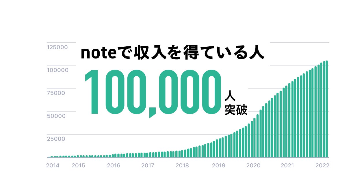 - 個人もコンテンツを販売し、収入を獲得。noteで収入を得ている人は10万人を突破