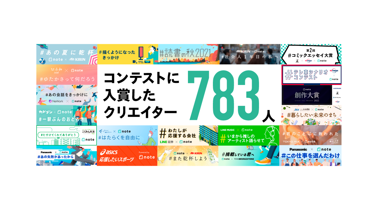 noteはクリエイターが文章や画像、音声、動画を投稿して、ユーザーがそのコンテンツを楽しんで応援できるメディアプラットフォームです。だれもが創作を楽しんで続けられるよう、安心できる雰囲気や、多様性を大切にしています。個人も法人も混ざり合って、好きなものを見つけたり、おもしろい人に出会えたりするチャンスが広がっています。2014年4月にサービス開始し、約2,400万件の作品が誕生。会員数は500万人(2022年4月時点)に達しています。