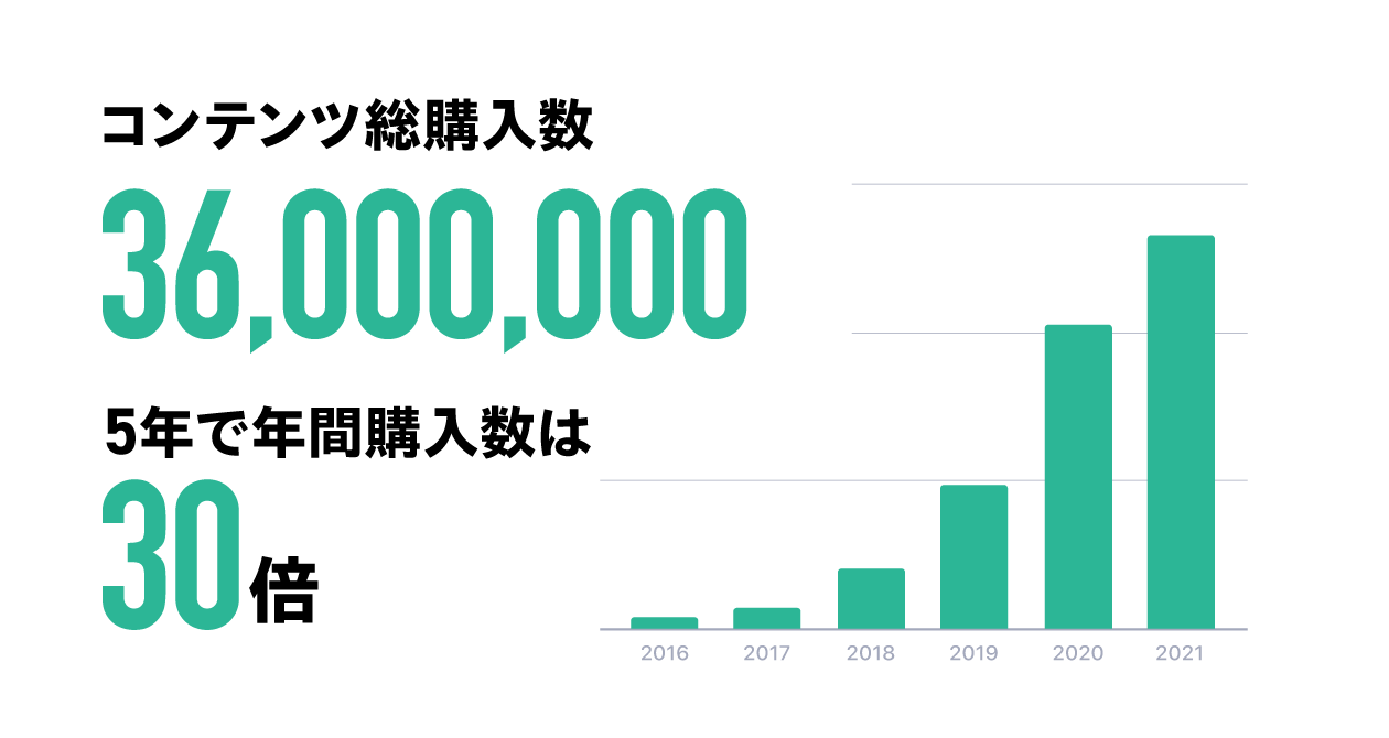 ※30倍:2017年と2021年の年間コンテンツ購入数を比較