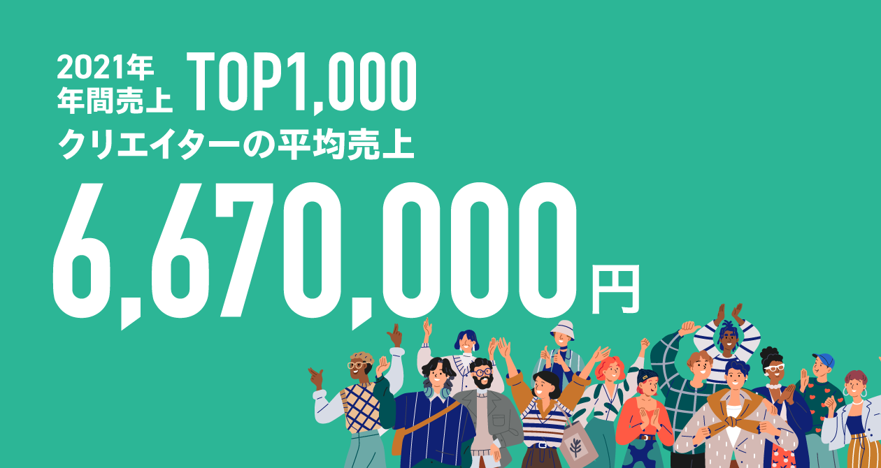 - 年間売上TOP1,000クリエイターの平均は667万円。累計売上1億円以上は28人。生計を立てている人も