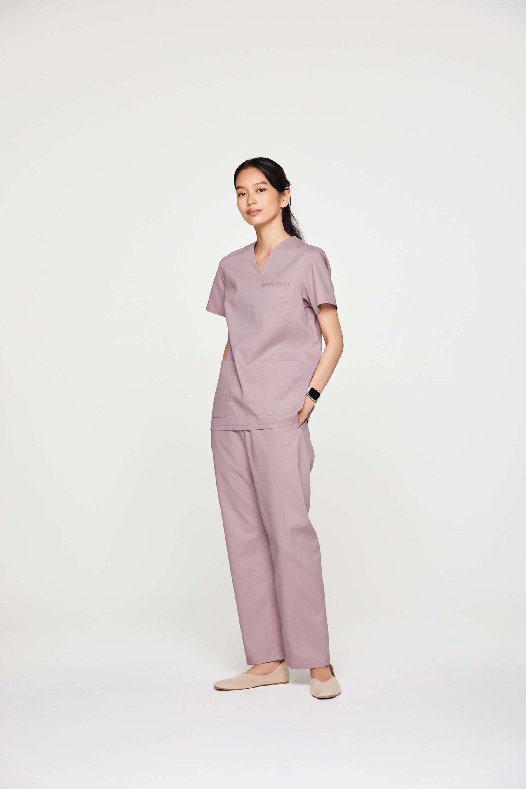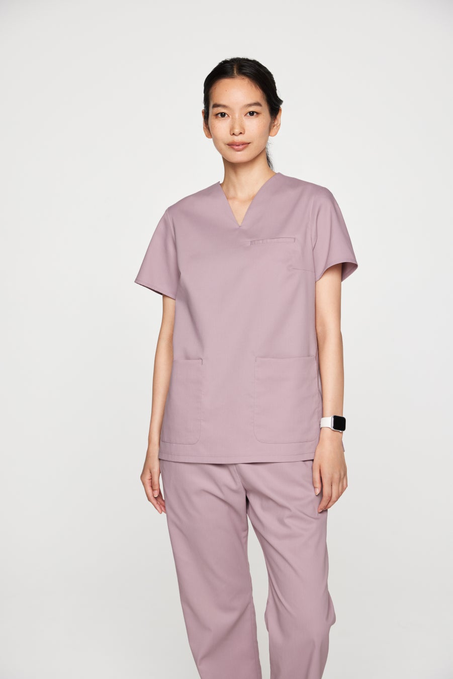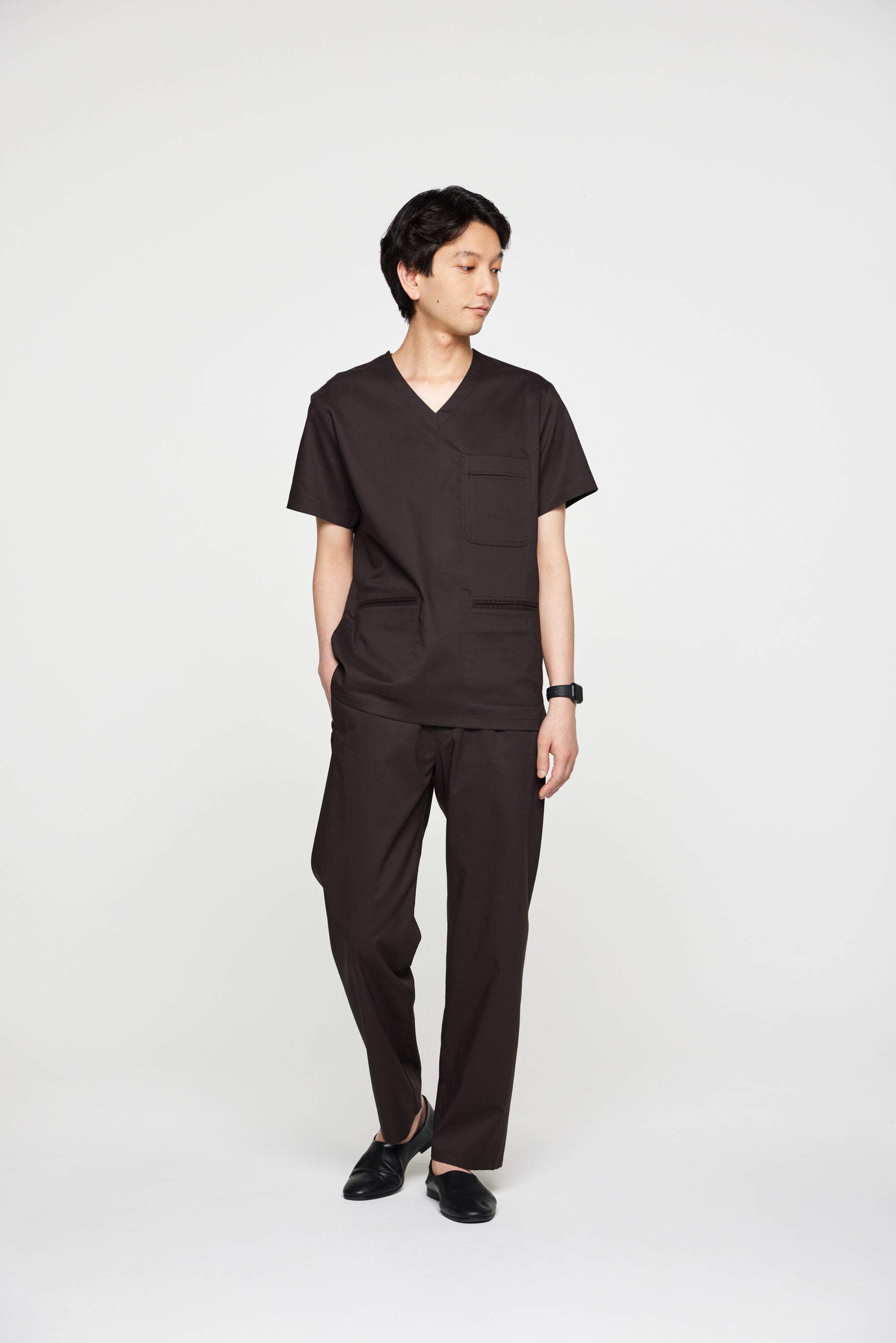 素材は綿とポリエステルの混紡でシワになりにくいうえに軽くハリがあるのが特徴で、体を動かすことが多い医療従事者にもストレスなく長時間着用いただけます。また素材の一部にリサイクル素材を使用し、環境にも配慮しております。カラーはこれまでのディープネイビー、ディープグリーン、チャコールグレー、プラムに加えて新色としてピンクとダークブラウンが登場し、発色の美しい全6色のカラー展開となります。ぜひご自身にあったカラーを選んだりチーム内で揃えたり、お好みに合わせて選んでいただければと思っております。