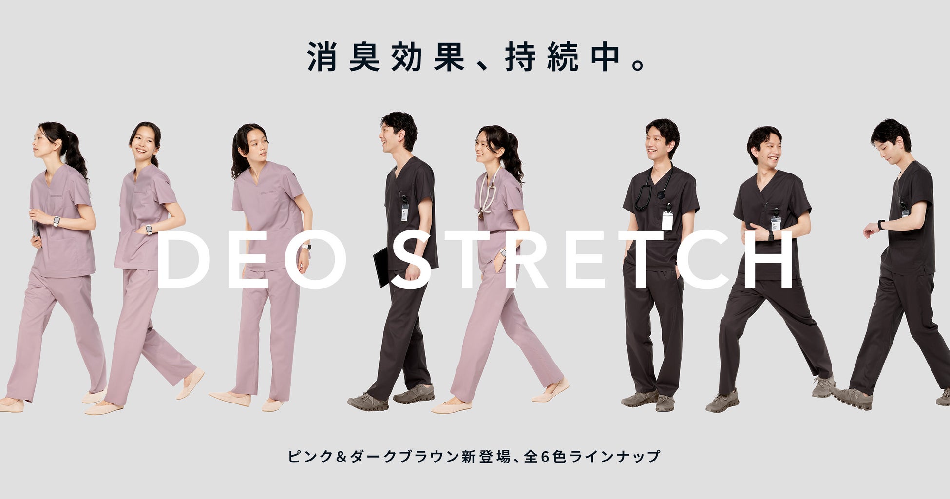 クラシコのロングセラー商品「デオスクラブ」が進化した機能性スクラブシリーズ「デオストレッチスクラブ」。洗濯を50回繰り返しても消臭率をキープし、高い消臭持続力とシンプルなデザインが特徴的な人気商品です。このシリーズは暑くなるこれからの季節、「勤務中に患者さんや同僚との距離が近くなった際に汗のニオイが気になる」という医療従事者が抱えるニオイ問題を解決するために開発されました。
