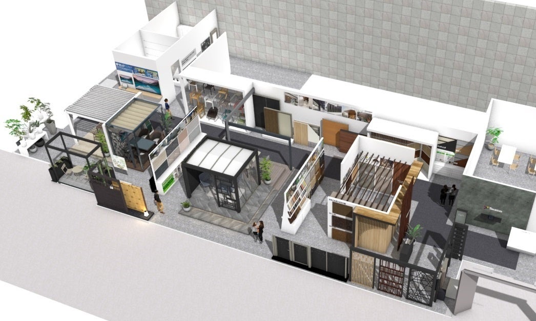 弊社における東京近郊のショールームとしては、埼玉県戸田市にある「首都圏ショールーム」に続いて2拠点目の開設となります。「首都圏ショールーム」は主に、住宅を中心としたガーデン・エクステリア空間の展示構成となっている一方で、「品川ショールーム」は店舗設計や建築関係の方向けとなるコントラクト(非住宅)シーンを中心とした展示構成となっています。
