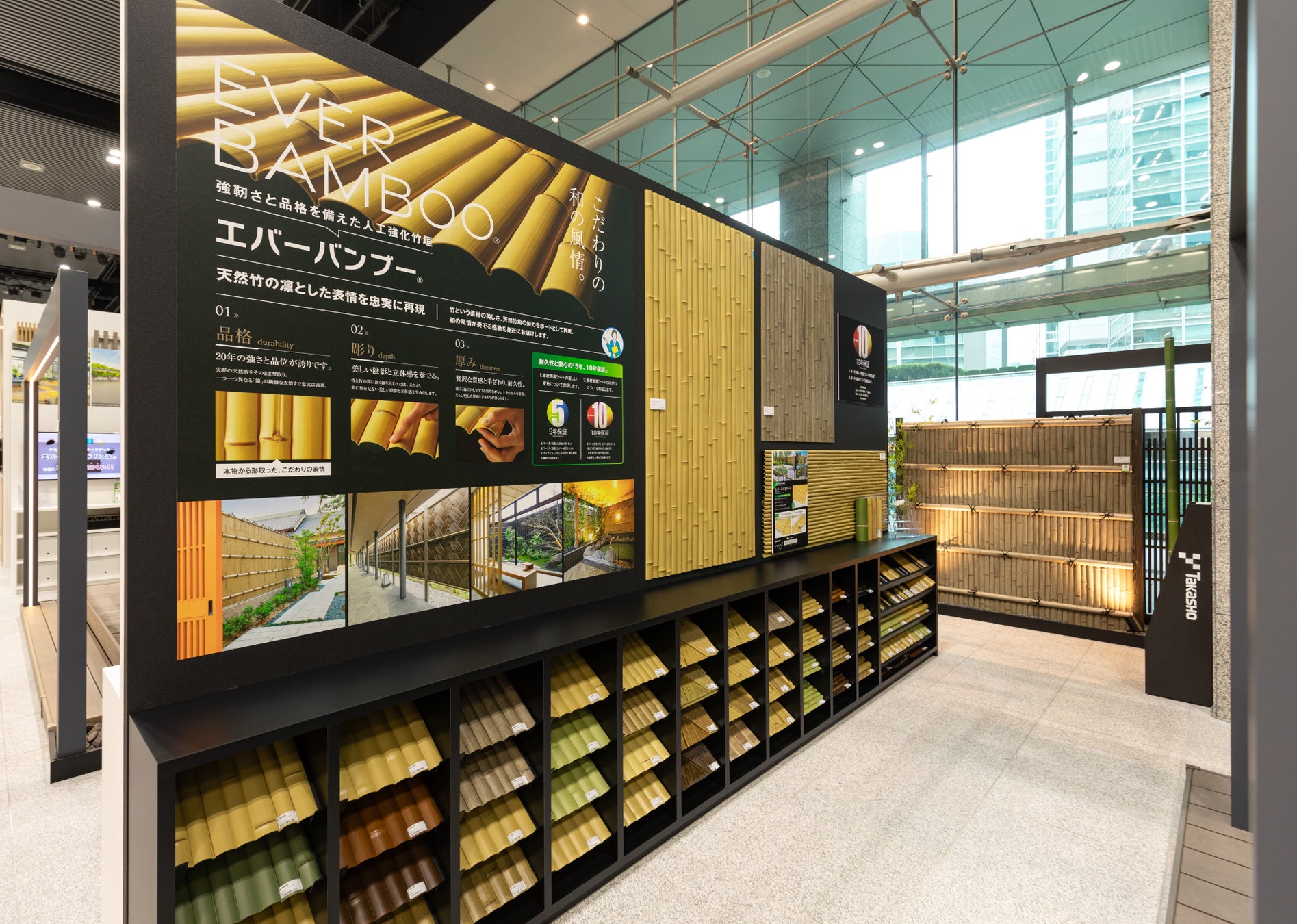 タカショーの原点ともいえる人工強化竹垣『エバーバンブーⓇ』。いまや圧倒的なシェアを誇っており、戸建住宅はもちろん、店舗や宿泊施設、温浴施設など、日本国内外問わずさまざまな和の空間にご利用いただいている商品です。たくさんの方から選ばれている理由やこだわりを、実物サンプルを手に取りながらご確認いただけます。