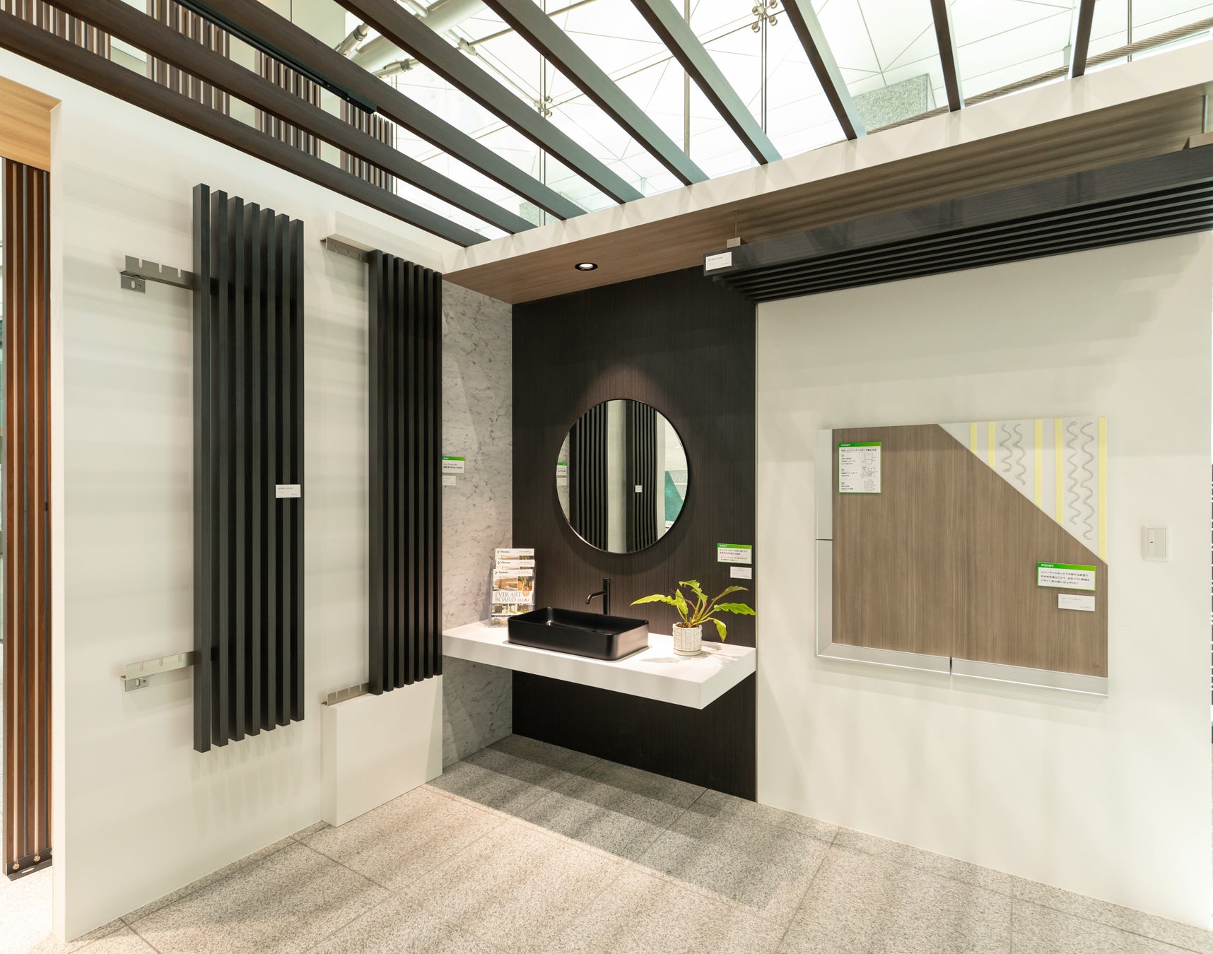 大きく分けて6つの展示シーン構成されております。空間展示はもちろん、施工現場事例や商品の使い方、施工方法も合わせてご案内しております。
