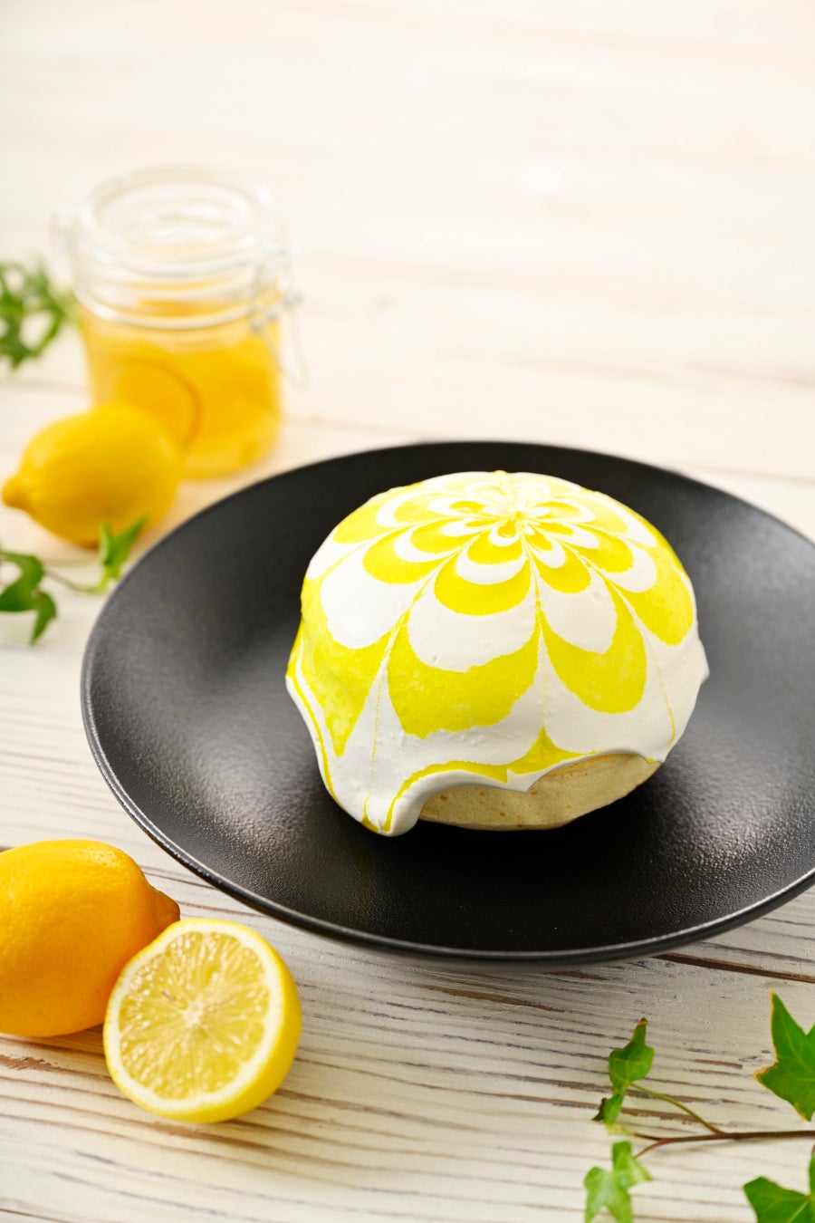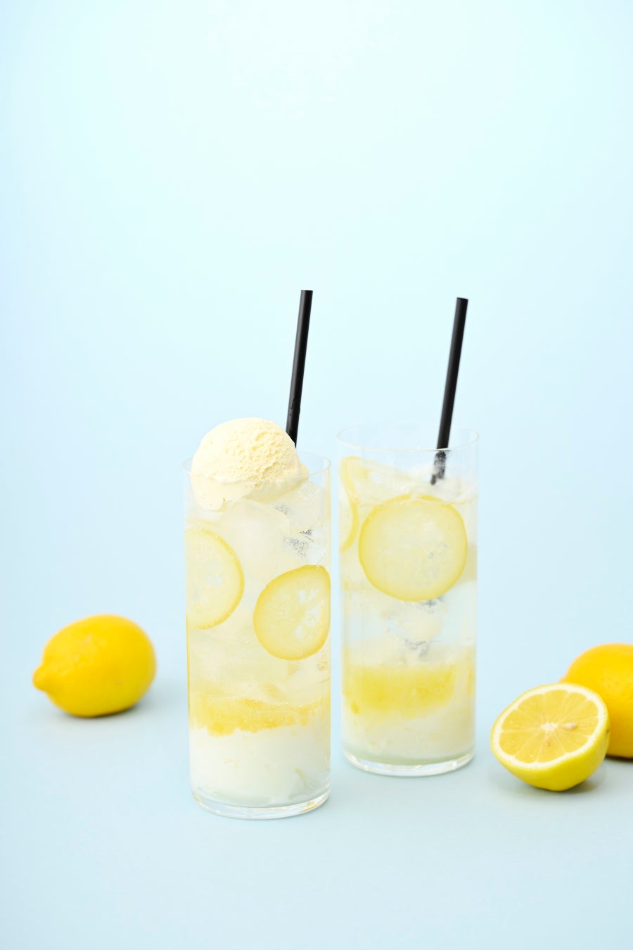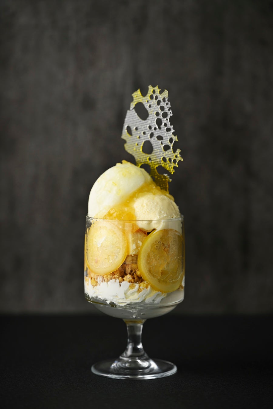 レモンと相性抜群のチーズケーキやバニラアイス、レモンソルベを重ねました。