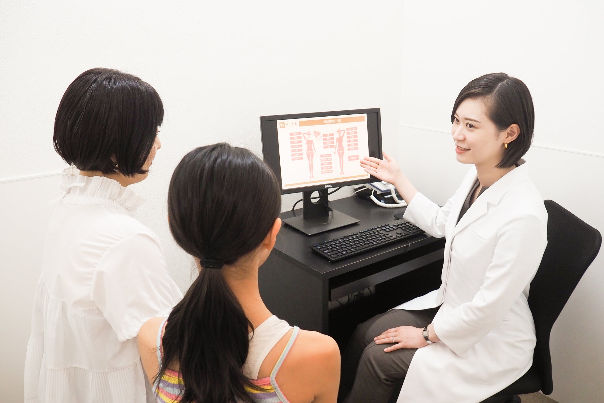 お子さまが「毛を無くしたい」と考えた際には、医師の指導のもと、看護師が施術を担当する「医療機関での脱毛」を選択肢の一つとしてご検討ください。医師による相談やカウンセリングを通じて、施術に対する疑問や不安にしっかりとお応えし、最適なプランをご提案いたします。また、医療脱毛は確実な効果を期待できるだけでなく、万が一の肌トラブルが発生した際にも、常駐する医師が適切に対応・治療いたしますので、安心して施術をお受けいただけます。
