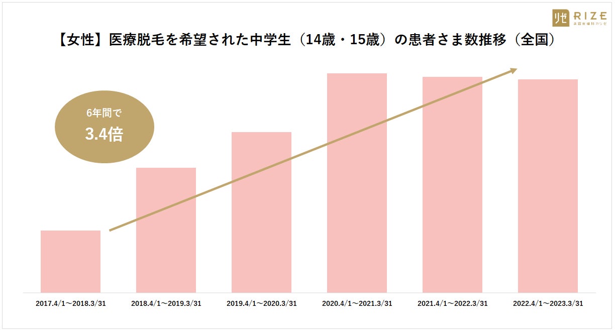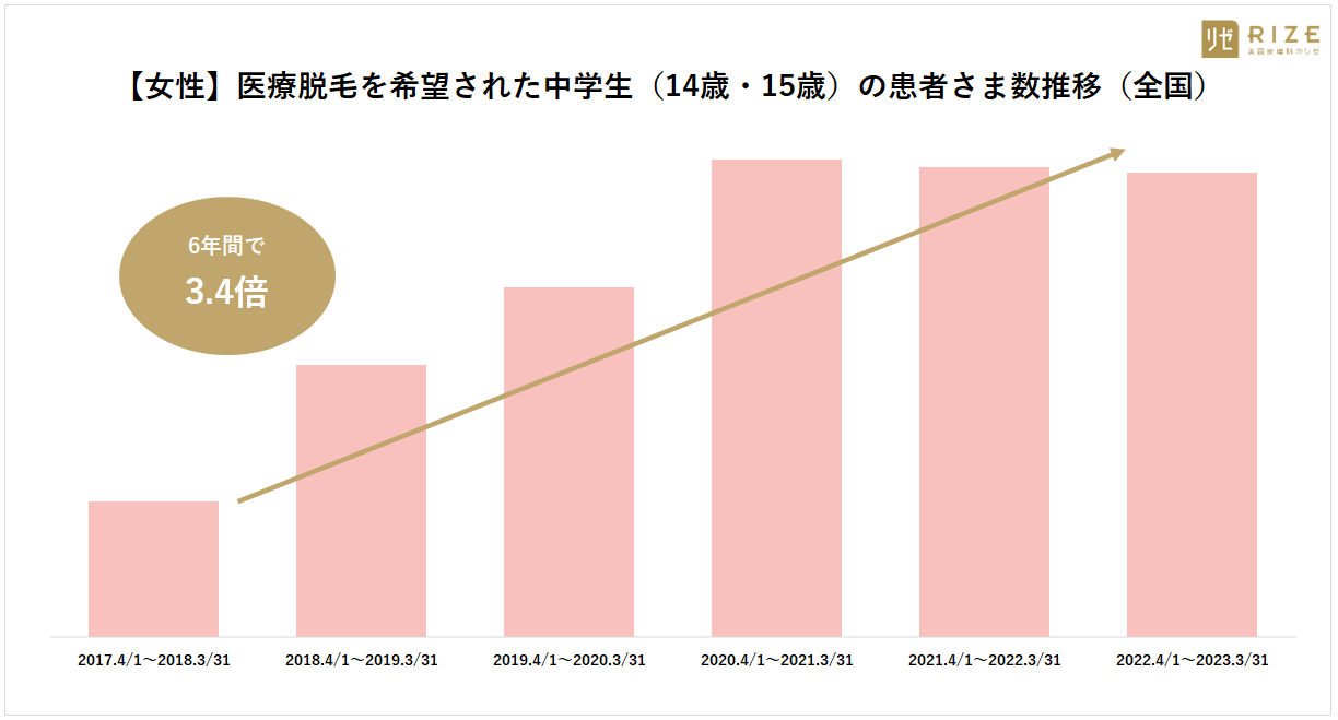 参考:医療脱毛を希望する15歳以下の男女患者数推移(比較データ):医療脱毛専門院『リゼクリニック』調べ