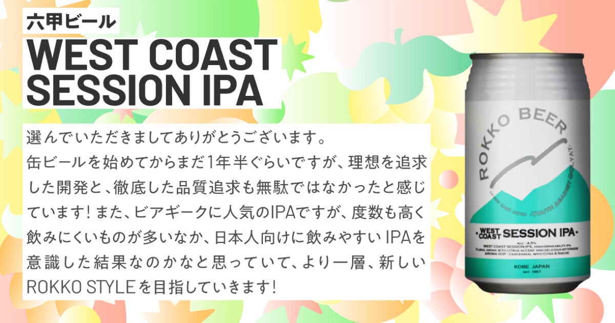 ●六甲ビール WEST COAST SESSION IPA(平均レビュー:4.01)