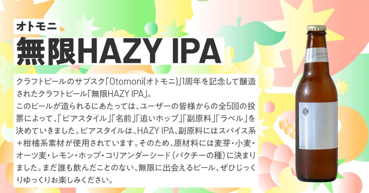 クラフトビール定期便「Otomoni(オトモニ)」を運営するmeuron株式会社(本社:東京都豊島区 代表取締役:金澤俊昌)は、20代のお客様から集めたクラフトビールのレビューを元に厳選した最先端なクラフトビール6本をセットにした「HAZY JUICY みんなでHAPPY!! U29に人気の個性が光る最先端クラフトビールセット」を発売開始いたします。