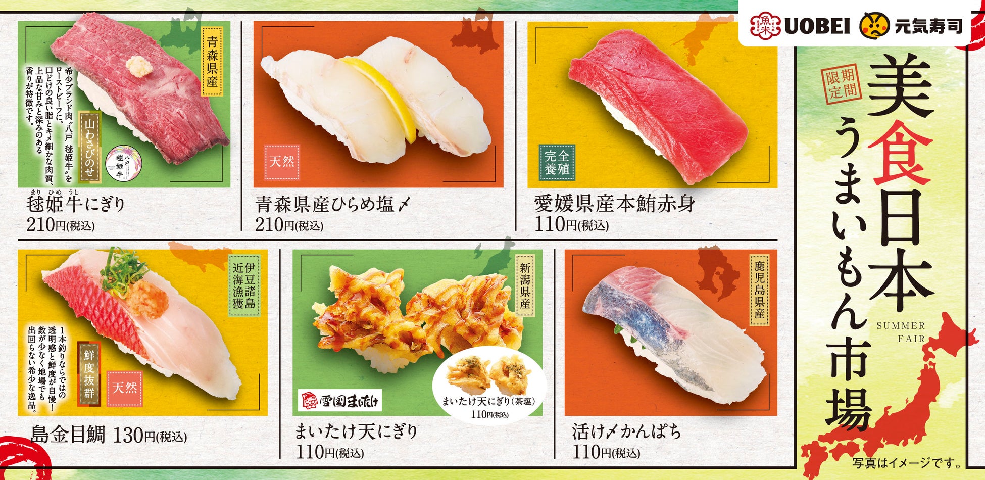 日本全国から自慢のネタが集合!元気寿司・魚べいで開催『美食日本うまいもん市場』