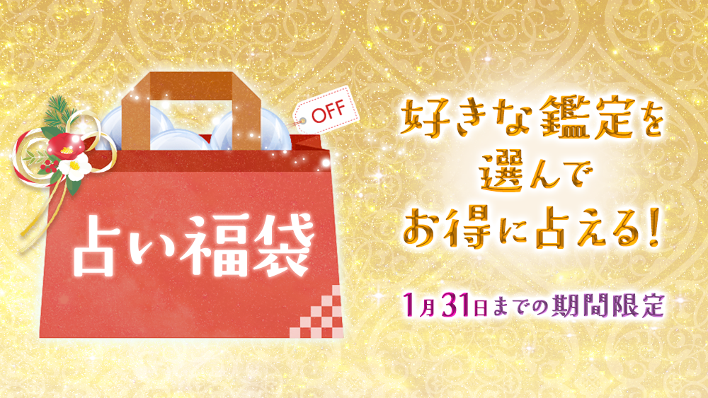 占い福袋では、お好きな鑑定をまとめて購入すると最大1,650円お得に占うことができます。この機会に気になる鑑定をまとめて占うチャンス!