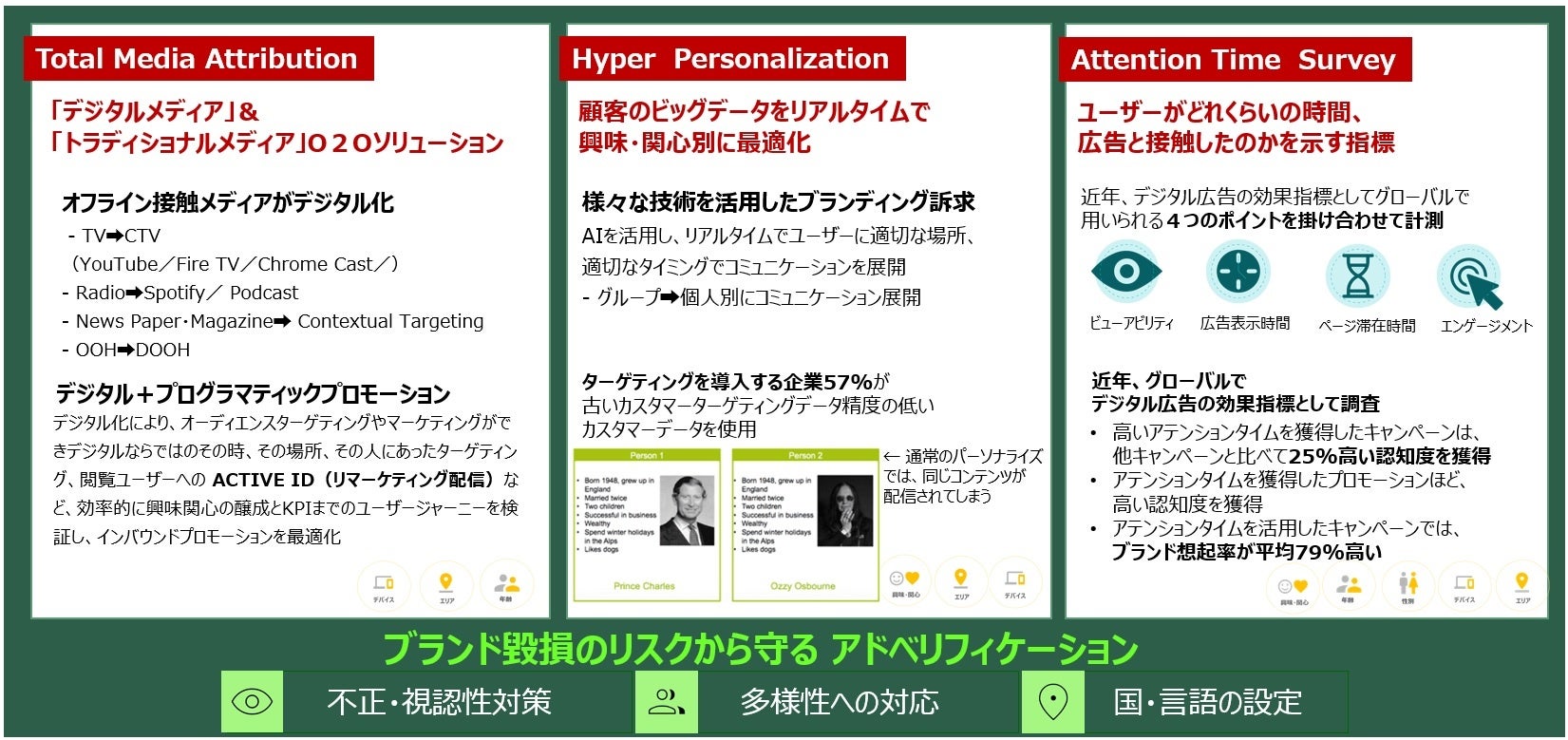 デジタル広告の配信状況を透明化するアドベリフィケーションのグローバルリーダーであり、不適切な広告表示による広告費の損失やブランド価値毀損を防ぐ計測とリスク回避機能を提供。