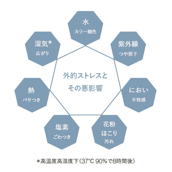 シャンプー時の水道水、紫外線、花粉、タバコのにおいなど、日常生活で避けることのできないさまざまな外的ストレスに先回りして髪を守ります。