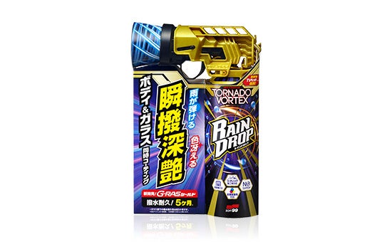 株式会社ソフト99コーポレーション(代表取締役社長:田中 秀明)が2023年9月に発売しました「レインドロップ トルネードヴォルテックス」は、洗車後の濡れた車に直接スプレーして水滴と一緒に拭き上げるだけの簡単な作業で、ボディ約5ヶ月・ガラス約3ヶ月※という強力な撥水耐久性能を実現し、キレイな状態を持続させることができるコーティング剤として、発売以来多くのお客様にご愛用いただいております。※弊社テストによる
