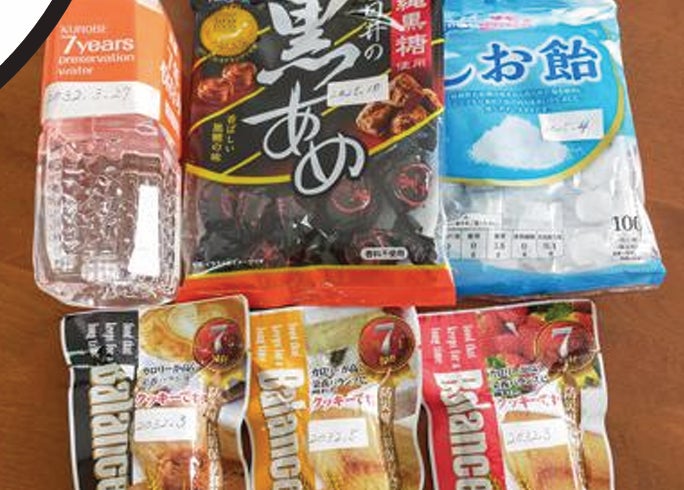 左)60代既婚女性(セカンドライフ層):災害時のストレスを和らげるために甘いもの(飴)を準備。