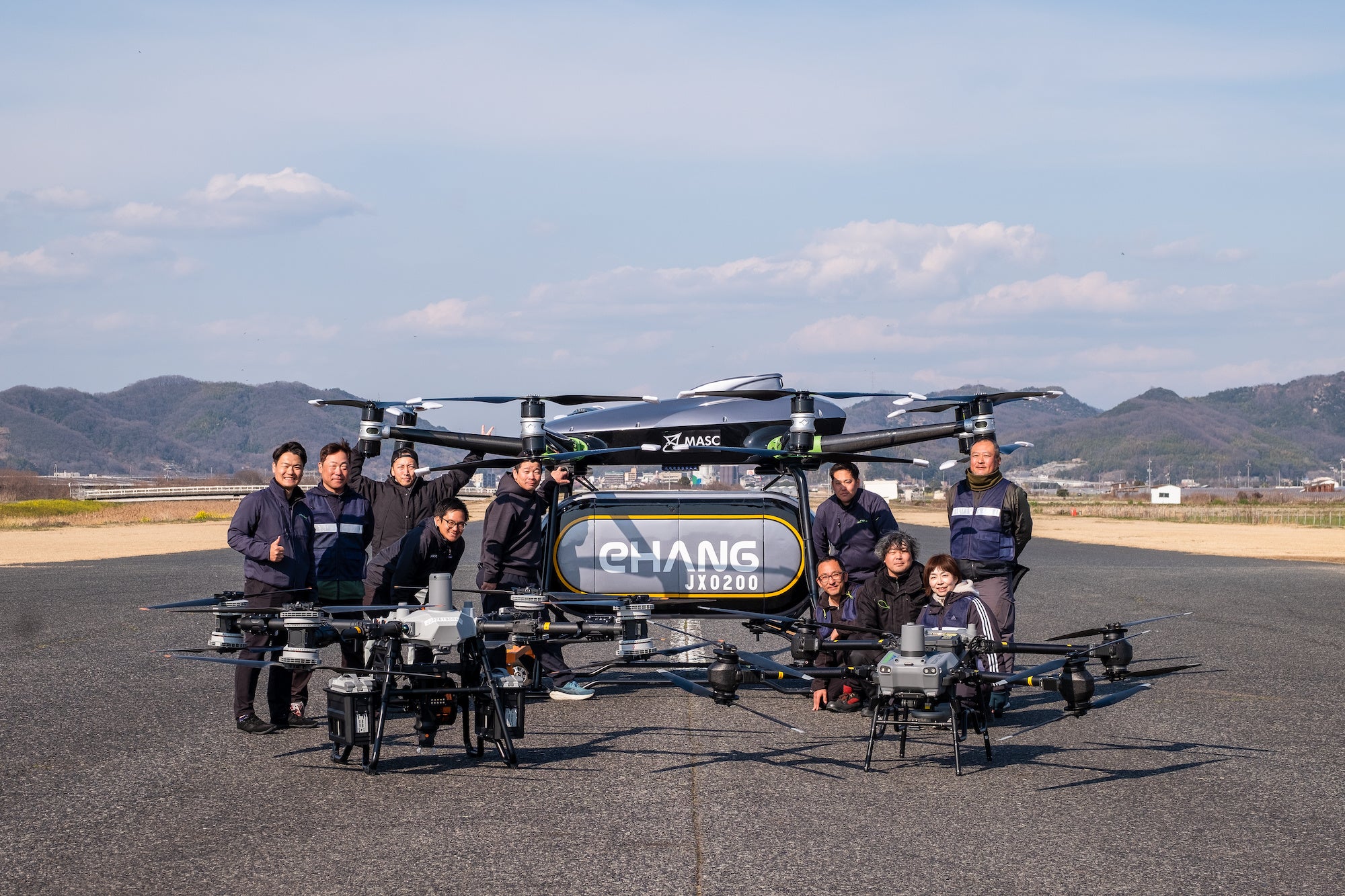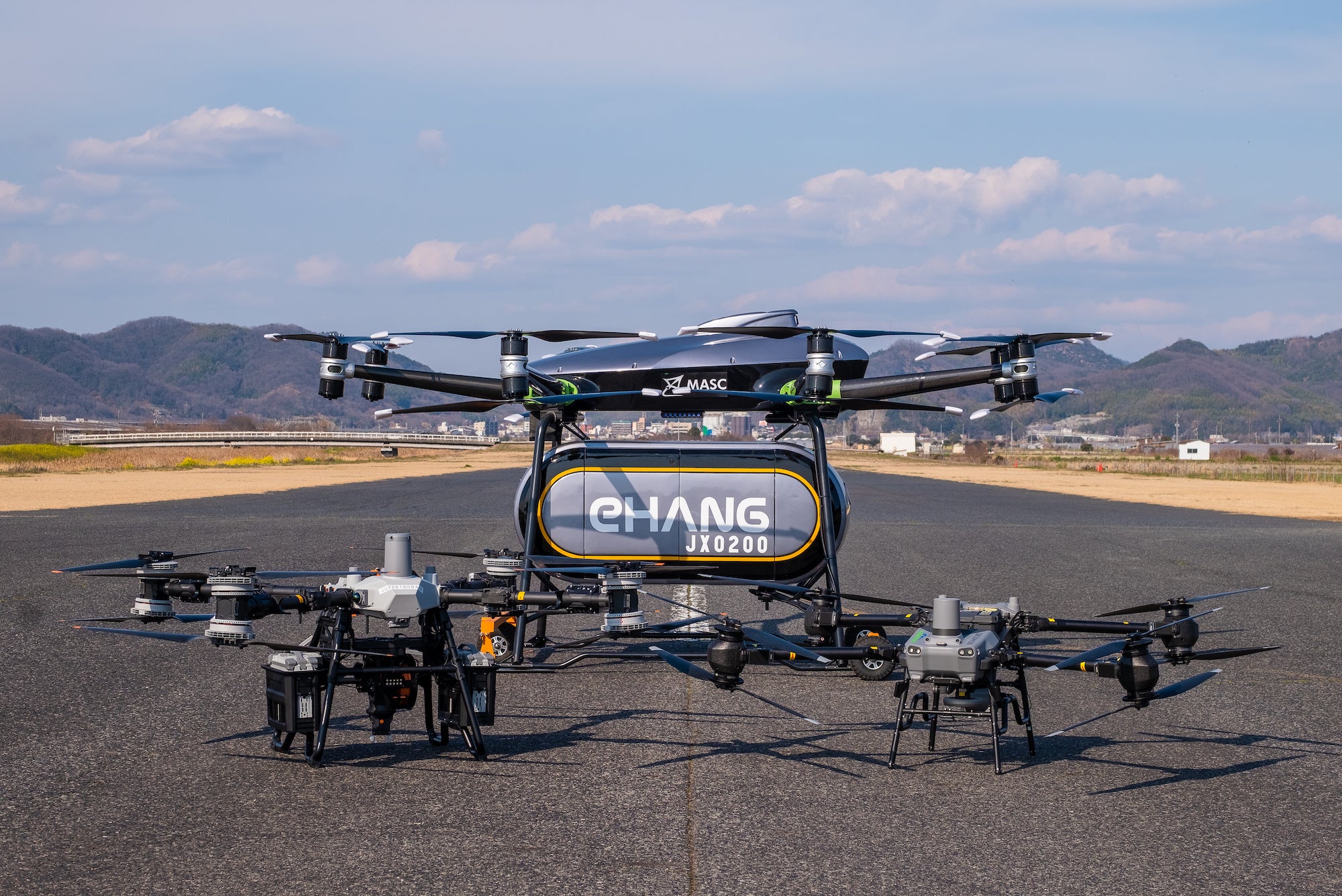 一般社団法人MASC(岡山県倉敷市 https://masc-jp.com/)が保有するEHang社製「EH216L」は最大250kgの貨物を搭載可能な物流用eVTOL(電動垂直離着陸機)。MASCはMASCフォーラム2026をはじめ、空飛ぶクルマの社会実装に向けた取り組みを精力的に進めている団体です。