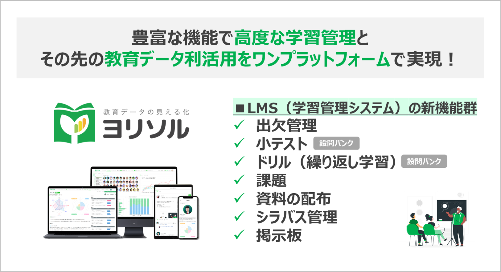統合型スクールマネジメントシステム「ヨリソル」、LMS(学習管理システム)機能の提供を開始
