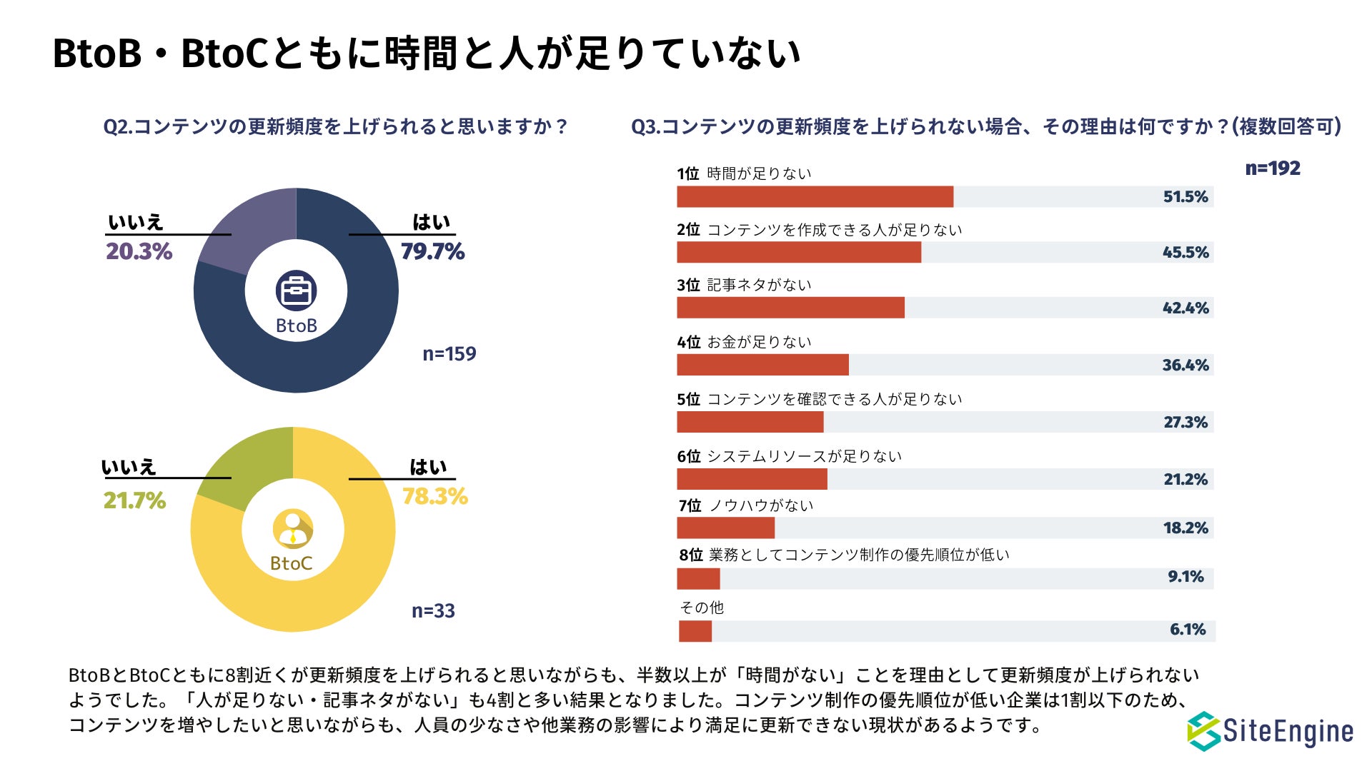 ・45%以上の企業がコンテンツ制作の時間または人が足りないと認識している